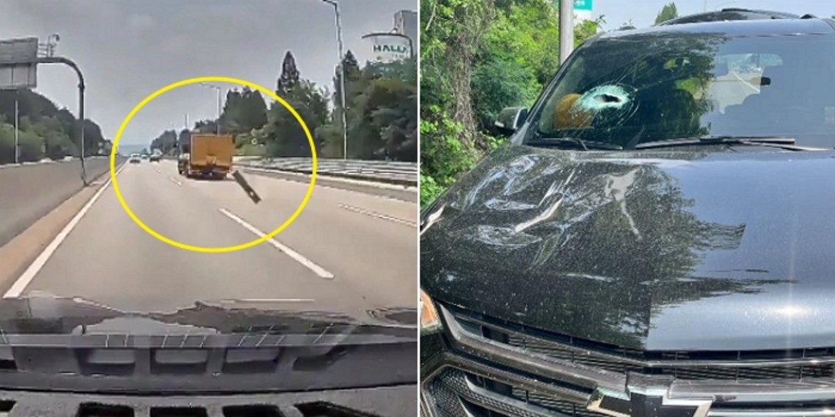 그러면서 "철판 막대기가 가해 차량 오른쪽에서 떨어져 나와 내 차 보닛을 맞고 전면 유리를 관통해 트렁크 유리를 뚫고 나갔다"고 설명했다.