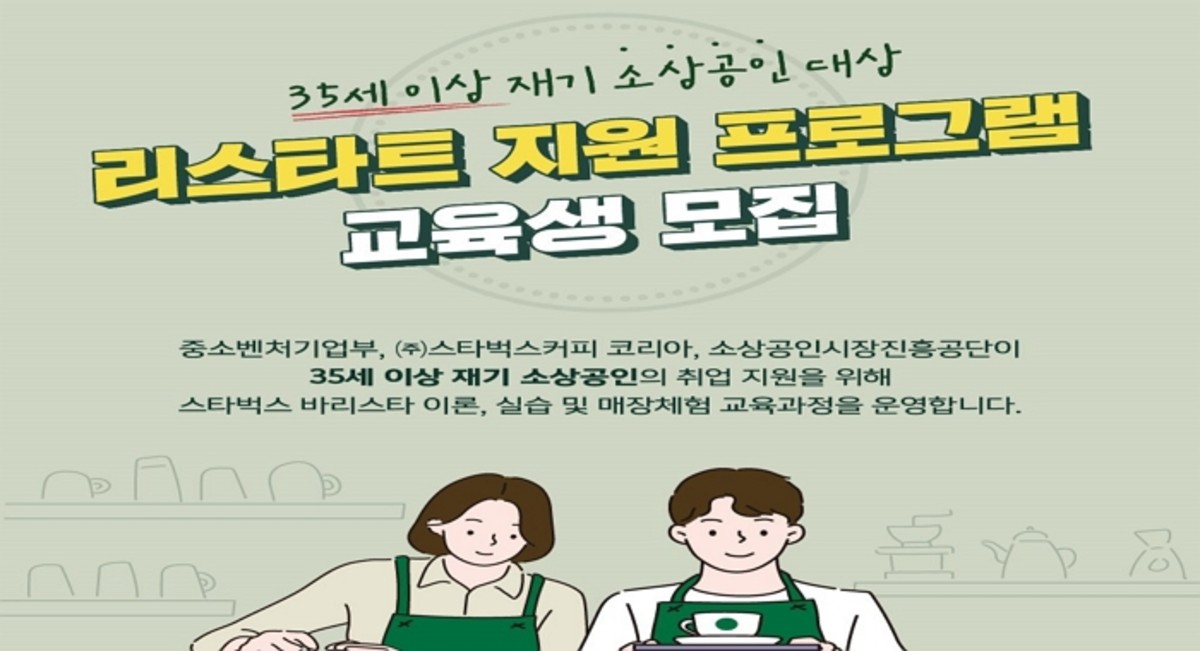 [인사이트] 김소영 기자 = 스타벅스 코리아가 7월 12일부터 오는 29일까지 중소벤처기업부, 소상공인시장진흥공단과 함께 2022년도 하반기 '리스타트 지원 프로그램' 교육생을 모집한다.