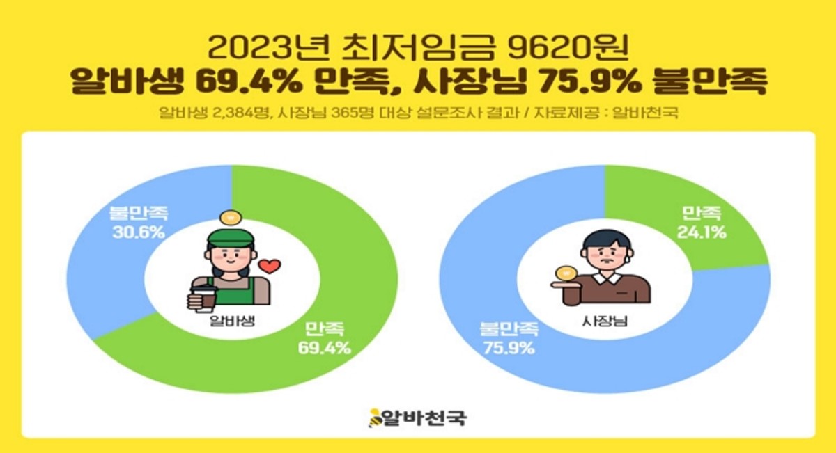 [인사이트] 전준강 기자 = 오는 2023년도 최저임금이 9,620원으로 결정된 가운데, 알바생과 사장님의 만족도가 극명하게 갈렸다.