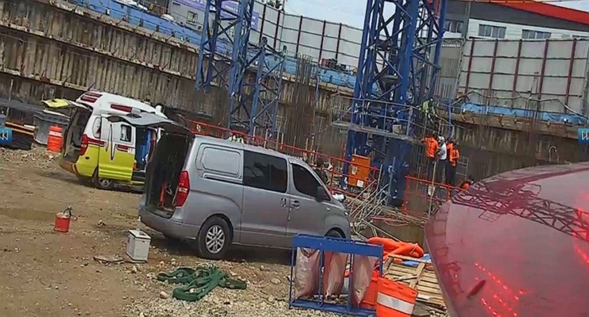 당시 이들은 크레인 승강기를 타고 공중에 떠 있었는데 와이어 줄이 끊기면서 추락한 것으로 전해졌다.
