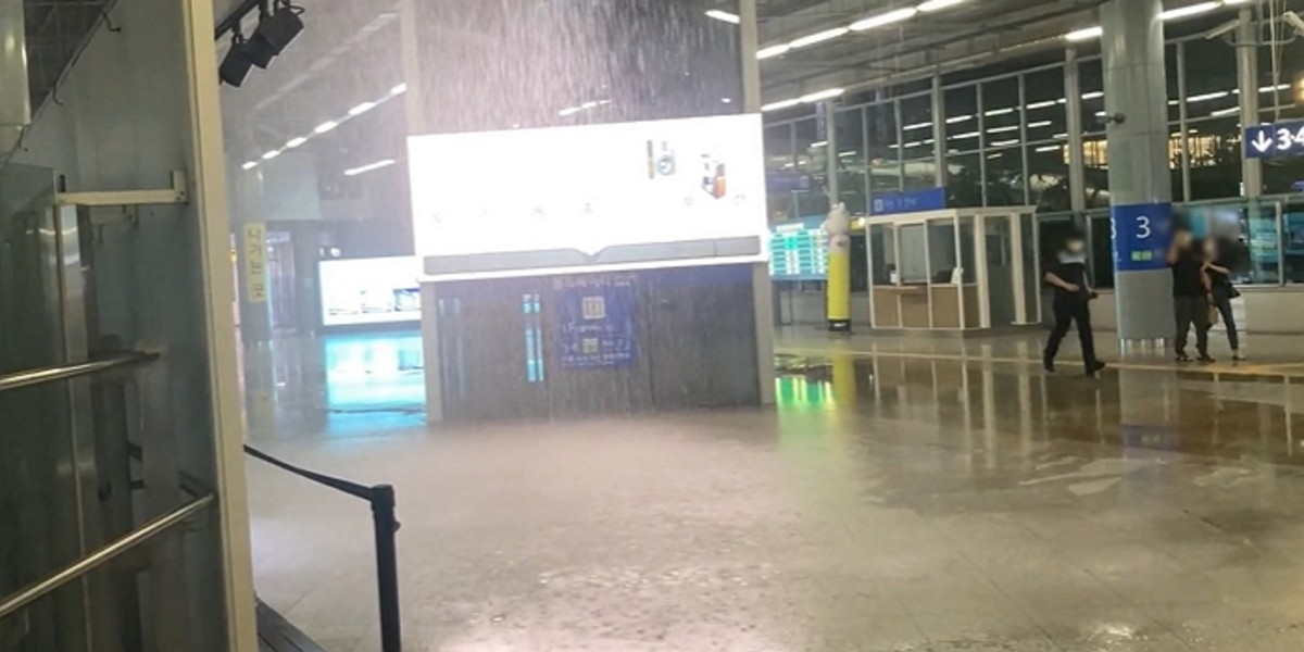[인사이트] 유진선 기자 = 천장에서 쏟아진 물로 난장판이 되어 버린 전날(17일) 밤 부산역 모습에 누리꾼들의 이목이 쏠렸다.