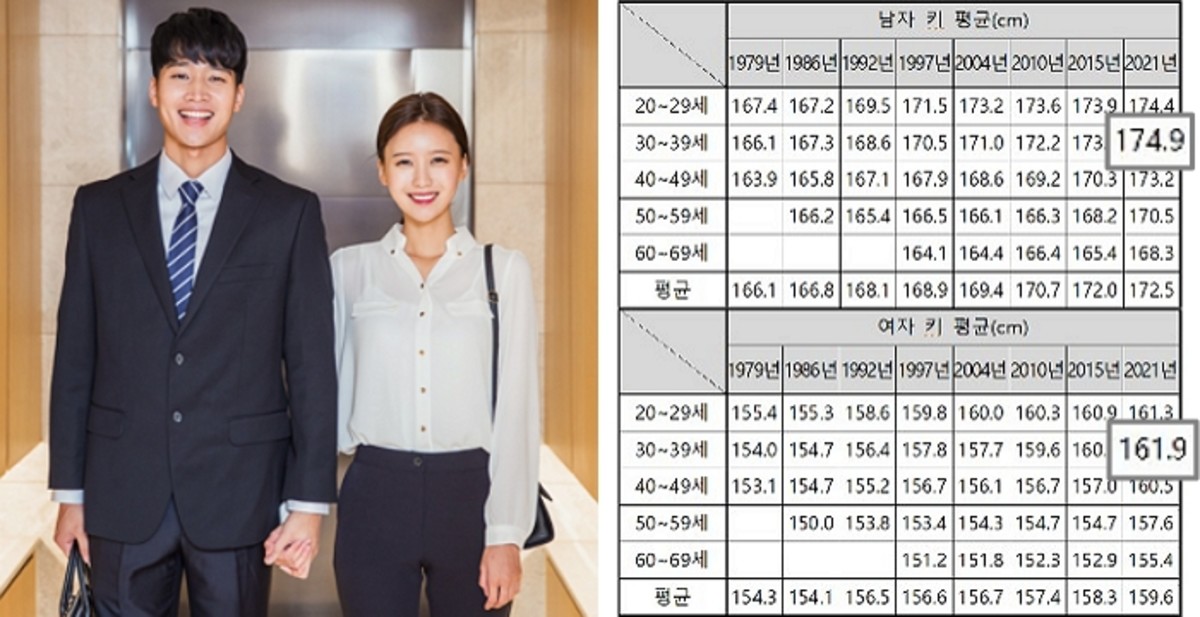 최근 산업통상자원부 국가기술표준원이 발표한 '제8차 한국인 인체치수 조사' 결과에서 우리나라 남성의 평균 키는 172.5cm, 여성은 159.6cm로 확인됐다.