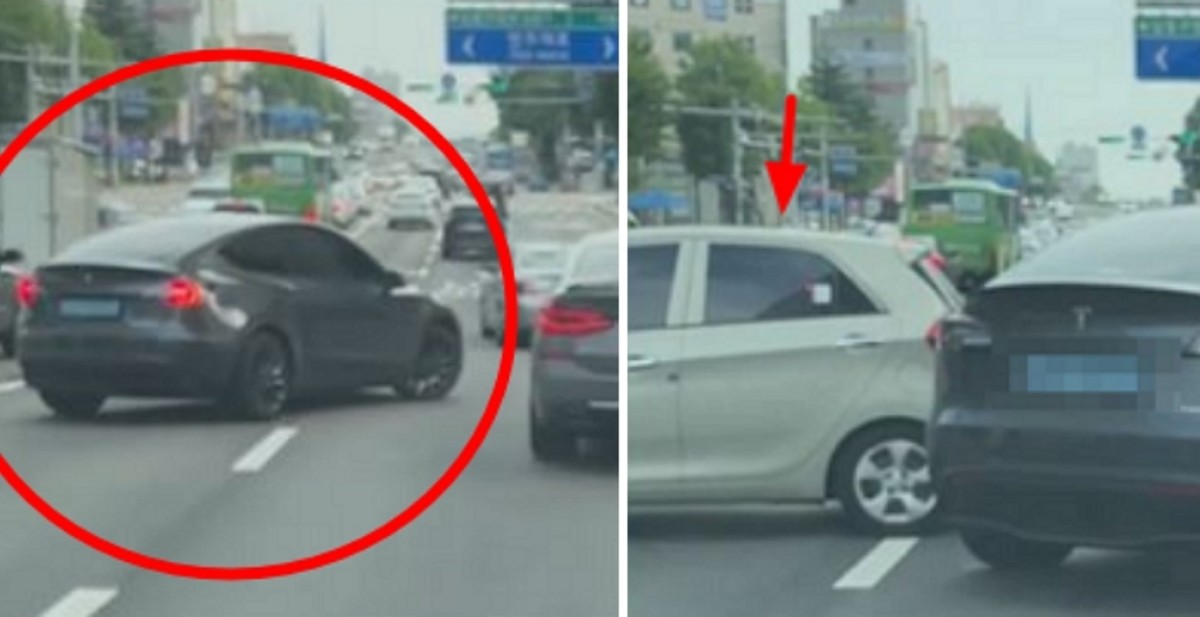 A씨는 급하게 속도를 줄여 큰 사고를 예방했지만 테슬라는 4차로로 진입하던 또 다른 차량과 부딪힐 뻔한 위험한 상황을 간신히 피했다.