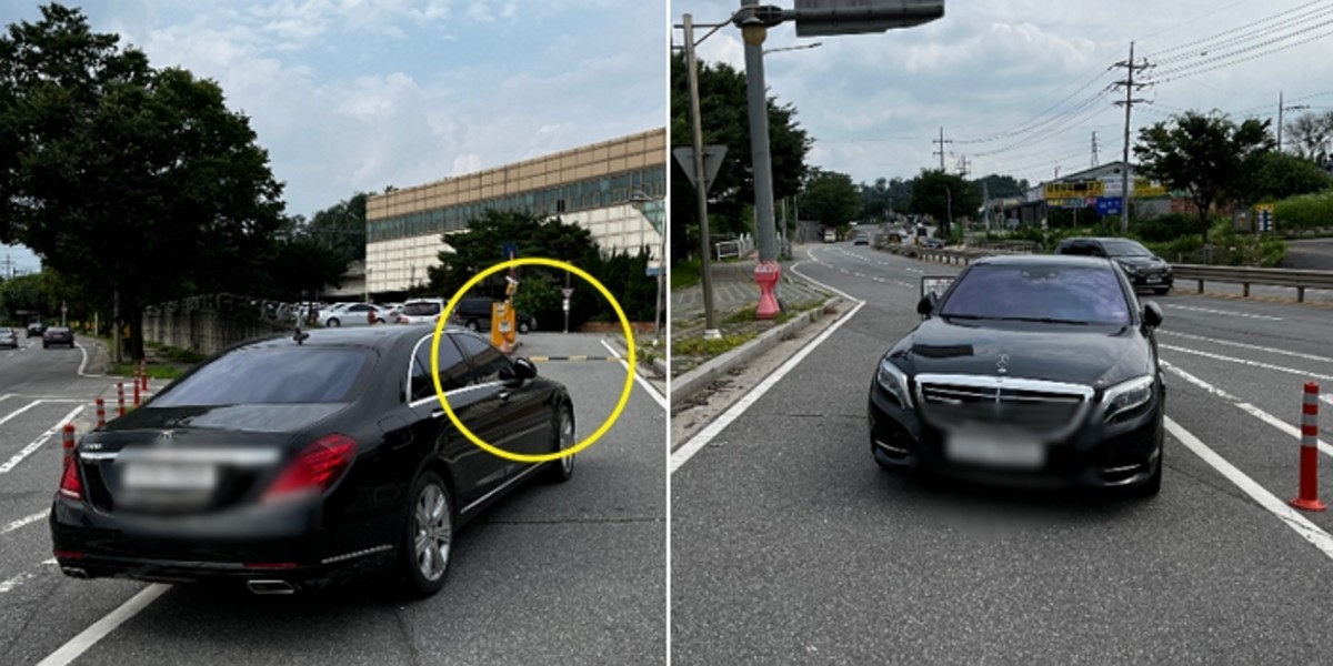 함께 공개된 사진을 보면 지하철 역 주차장 진입로에 검정색 벤츠 차량이 주차돼 있다. 이 벤츠 차량으로 인해 다른 차량들은 주차장에 진입할 수 없는 상태다.
