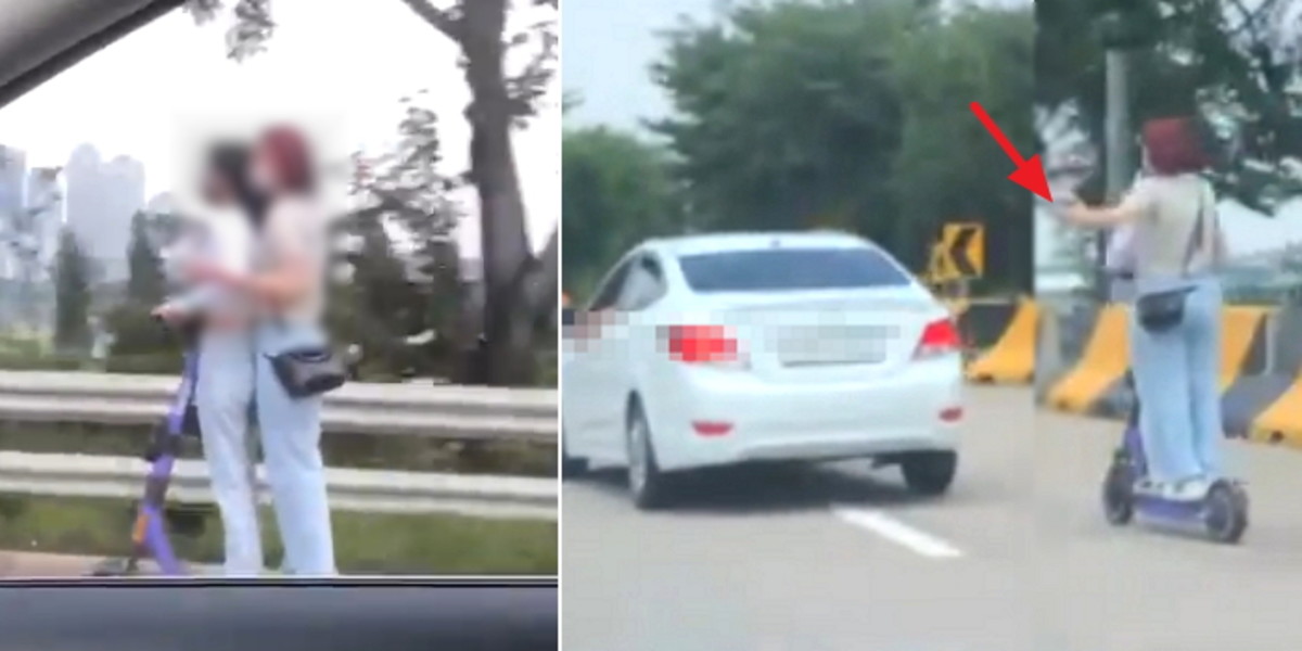 [인사이트] 김다솜 기자 = 서울 올림픽대로에서 여성 두 명이 전동 킥보드를 타고 질주하는 모습이 포착됐다.