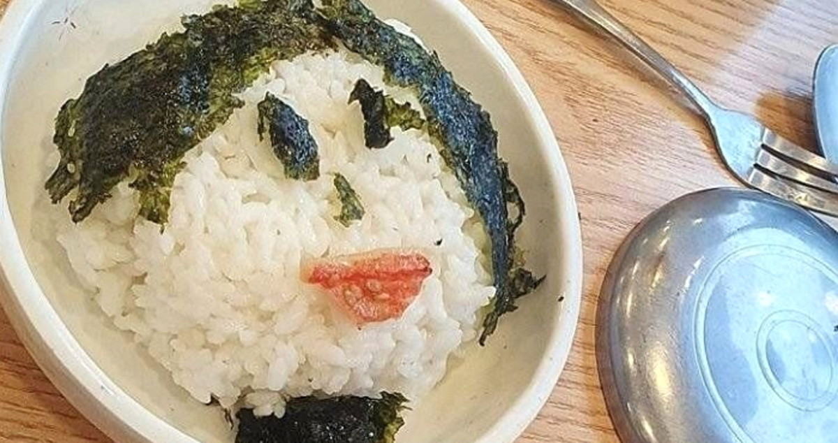 그가 사연과 함께 공개한 사진에는 아이가 김으로 얼굴 모양을 만든 밥의 모습이 담겼다.