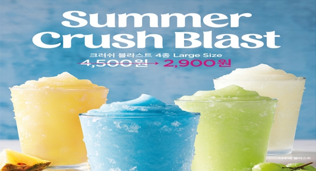 '썸머 크러쉬 블라스트'는 블루 레몬, 파인애플, 나주배, 청포도 등 여름철 인기 과일을 주원료로 활용해 과일 본연의 신선한 맛과 향을 그대로 즐길 수 있고, 아삭아삭한 살얼음이 씹히는 시원한 식감이 특징이다.