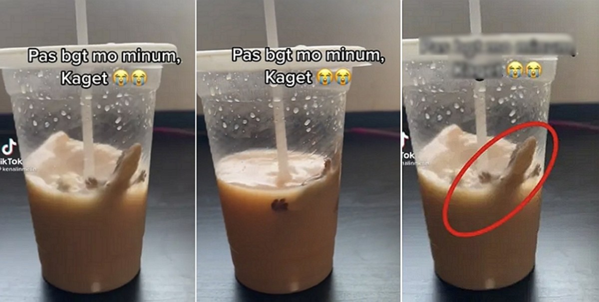 놀랍게도 여성이 마신 밀크티 컵 안에는 몸집이 아주 작은 도마뱀 한 마리가 자리잡고 있었다.