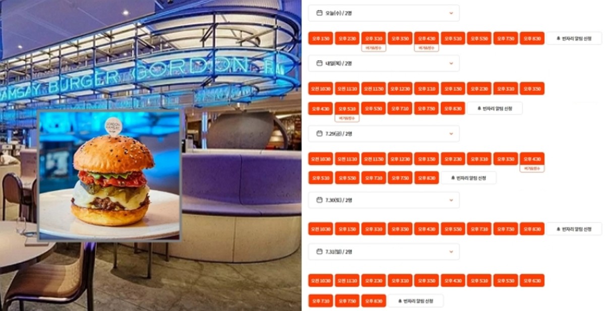 예약은 전문 예약 사이트 '캐치테이블'에서 이뤄지는데 확인 결과 고든 램지 버거의 빈 자리가 많았다. 주말과 평일 상관없이 여유로운 상황이다.