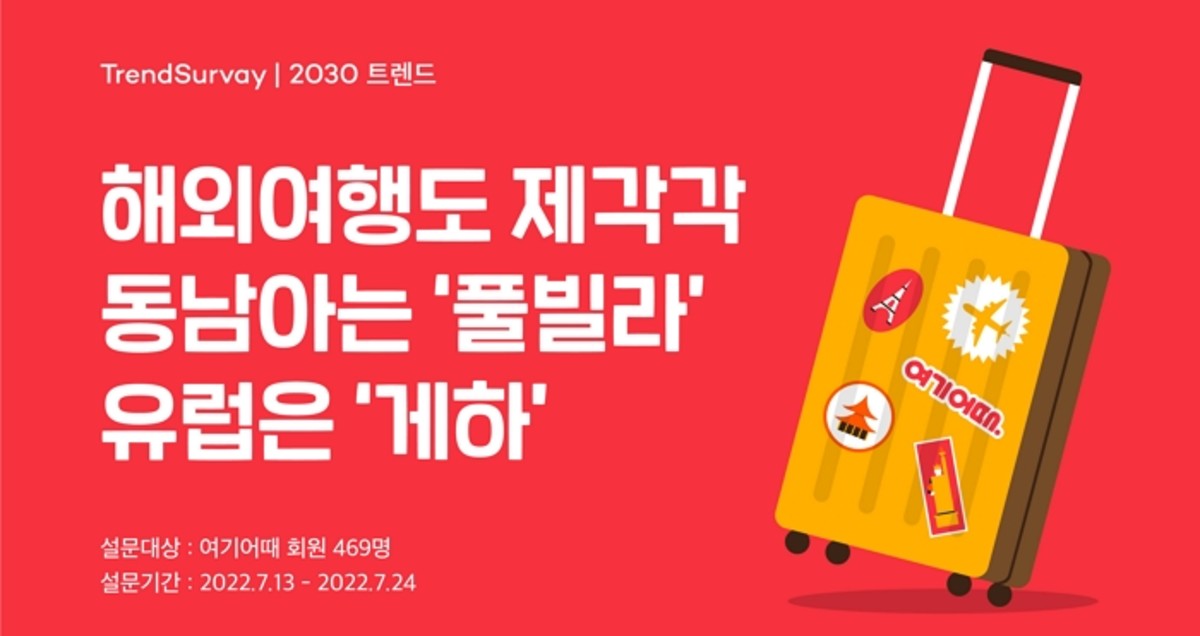 이번 설문조사는 이달 13일부터 24일까지 모바일 리서치 플랫폼 오픈서베이를 활용해 여기어때 앱 사용자 469명을 대상으로 진행했다.