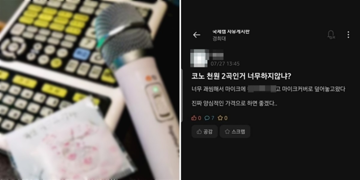 지난 27일 경희대학교 국제캠퍼스 에타에는 "코노 천원 2곡인 거 너무하지 않냐"는 제목의 글이 올라왔다.