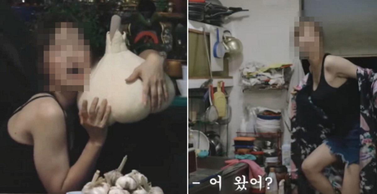 논란이 된 영상에서는 한 여성 연기자가 마늘을 껴안으며 성적 표현을 연상시키는 대사를 이어간다.
