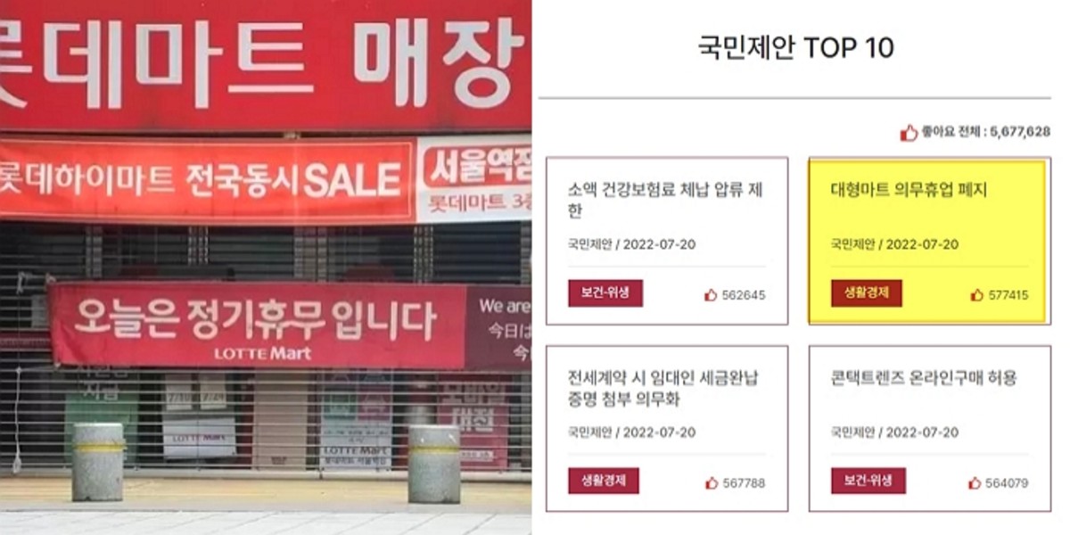 이 중 '대형마트 의무휴업 폐지'는 압도적인 지지를 받으며 줄곧 1위를 차지했고 이에 대한 시민들의 기대감은 높아졌었다.