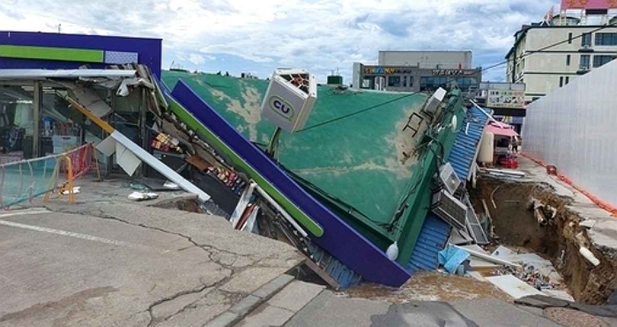 이 사고로 인근 편의점 건물 절반이 주저앉는 피해를 입었다.