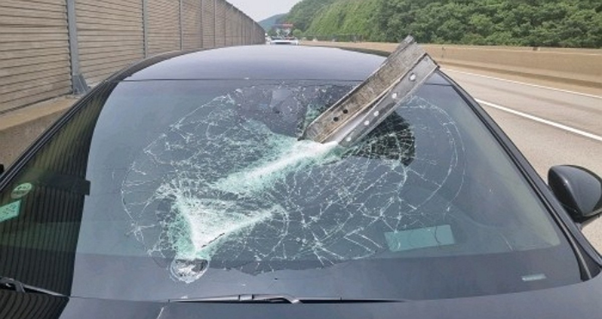 [인사이트] 김나영 기자 = 고속도로를 달리던 차량이 화물차에서 떨어진 알루미늄 폼에 맞아 차량 앞유리가 박살 나는 사고를 당했다.