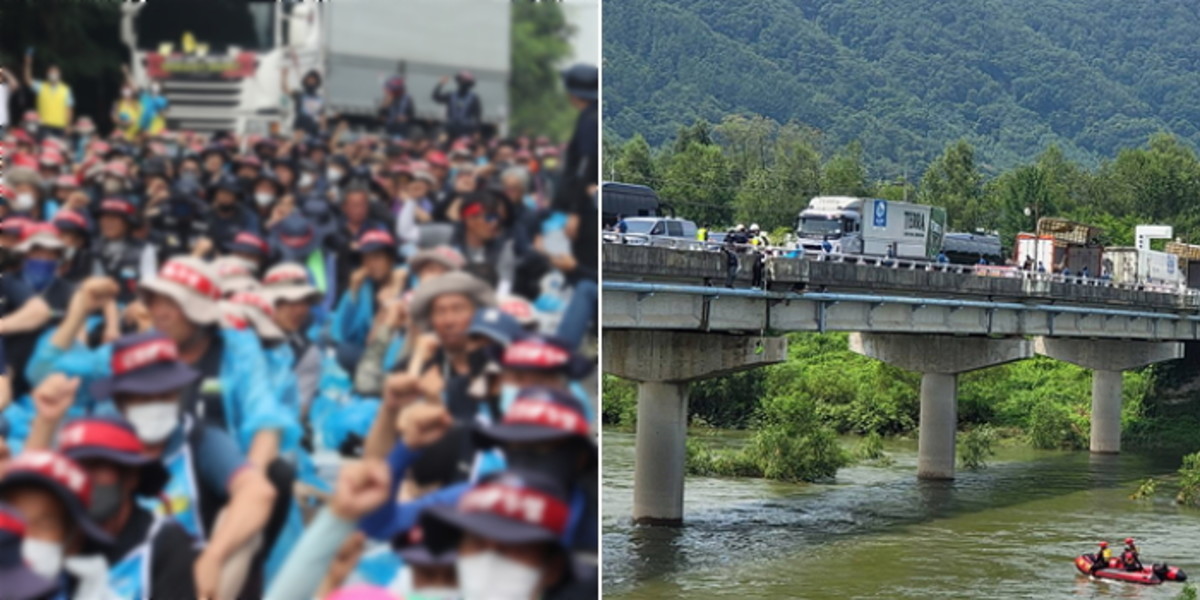 [인사이트] 전준강 기자 = 하이트진로 강원 홍천 맥주 공장 앞에서 사흘째 집회를 열고 있는 민주노총 공공운수노조 화물연대 소속 일부 노조원이 일대 강으로 뛰어내리는 사건이 벌어졌다.