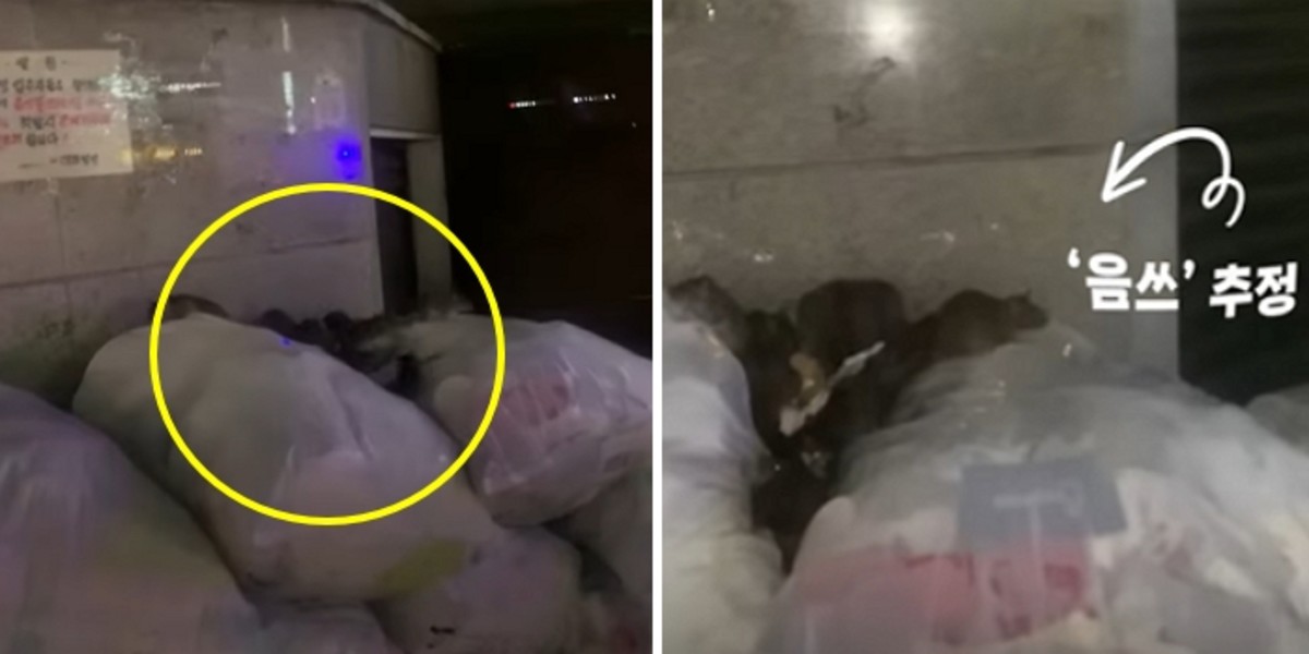 영상에는 쓰레기봉투 위로 쥐 여러 마리가 새카맣게 몰려 있는 모습이 담겼다.