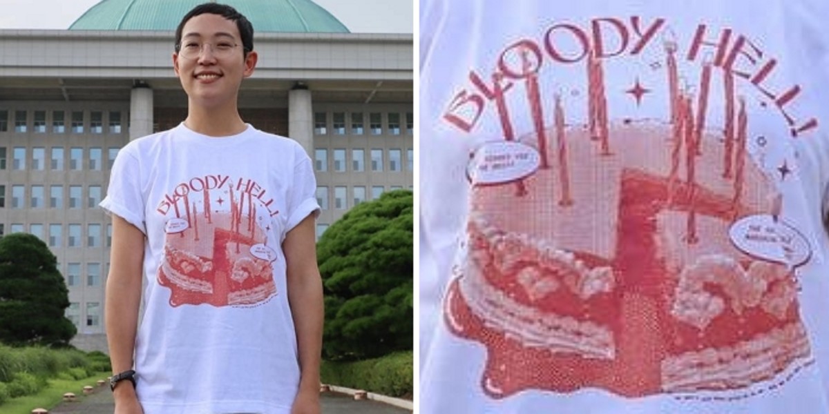 [인사이트] 유진선 기자 = 장혜영 정의당 의원이 월경권 보장에 대한 관심을 촉구하며 생리 관련 티셔츠 인증샷을 공개했다.