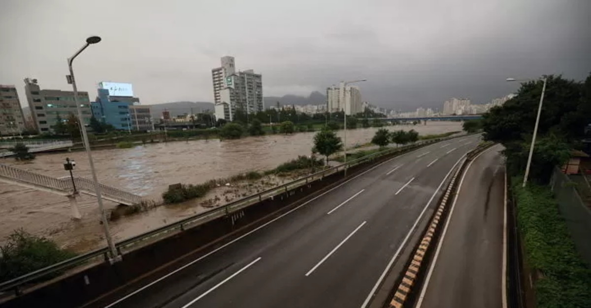 중부지방 집중호우로 동부간선도로가 전면 통제된 8일 서울 중랑교에서 바라본 동부간선도로가 통제되고 있다. / 뉴스1
