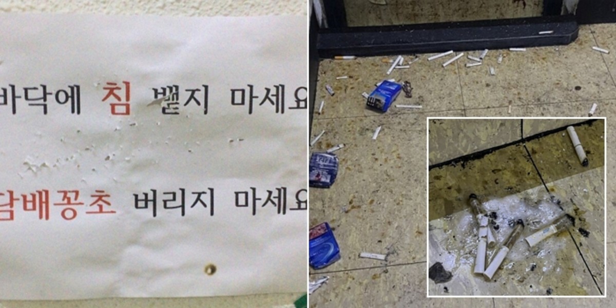 그는 이와 함께 계단에 버려진 담배꽁초와 가래침 사진도 찍어 공개했다.