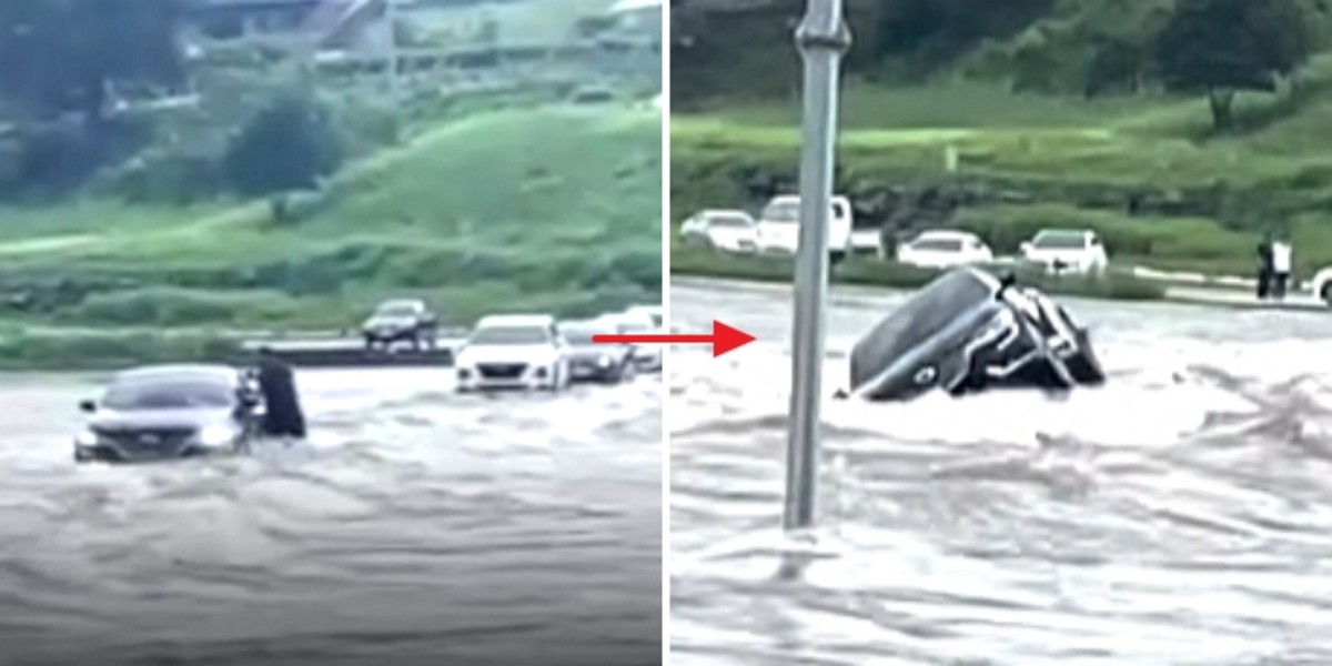 얼마 뒤 쏟아지는 물살을 이기지 못한 차량은 그대로 강물에 휩쓸려 떠내려갔다. 자칫하면 운전자도 차량과 함께 떠내려갈 뻔했던 아찔한 상황이었다.