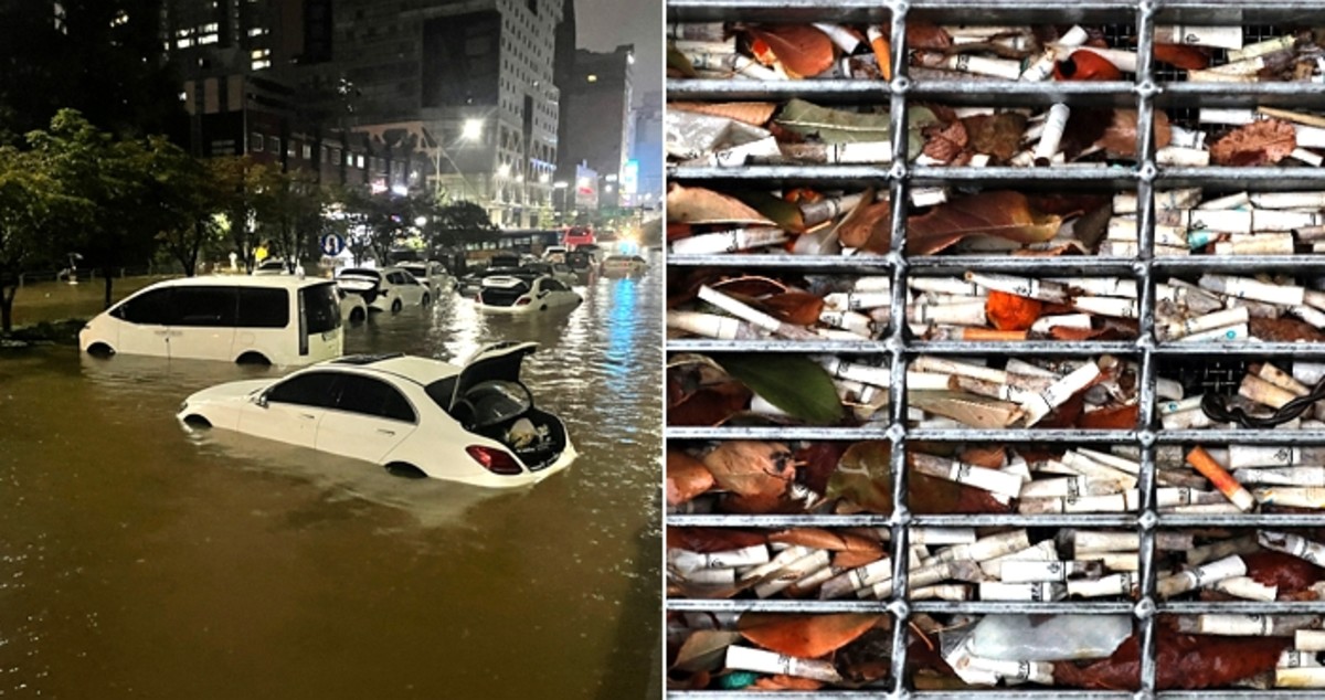 무심코 버리는 쓰레기와 담배꽁초로 배수로가 막히면 장마철 집중호우가 큰 침수 피해로 이어질 수 있다. 전문가들은 집 주변 배수구를 스스로 정비하는 것만으로도 침수 피해를 크게 줄일 수 있다고 당부했다.