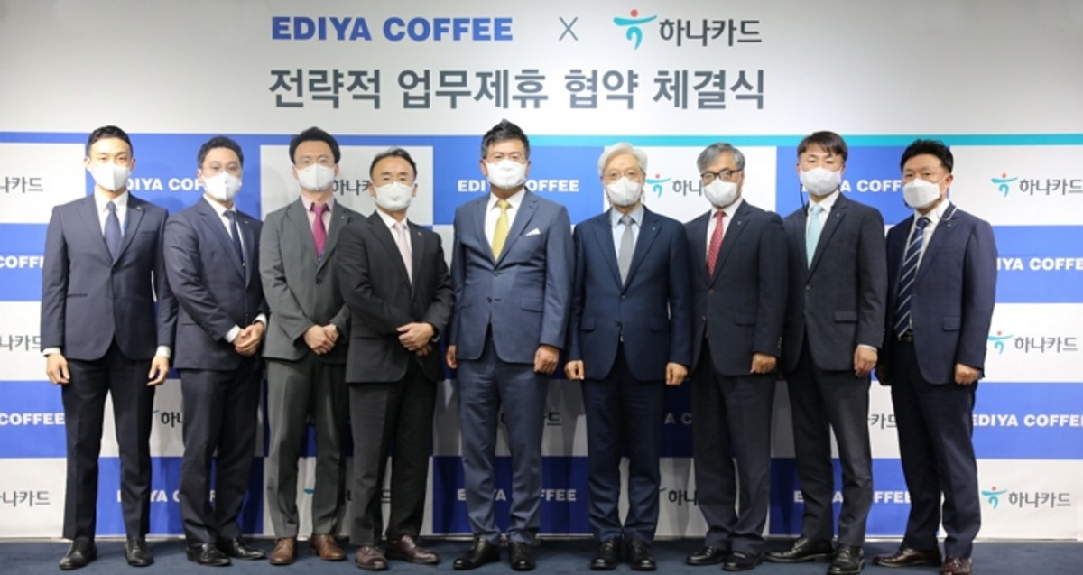 업무협약식에는 이디야커피 문창기 회장과 하나카드 권길주 대표이사 등 양측 관계자가 참석했다.