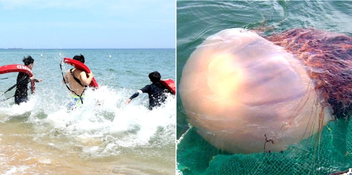해파리가 수영한계선 안쪽으로 들어오면서 제트스키를 띄우기 어려워 안전요원들이 직접 뜰채 등을 활용해 포획했다.