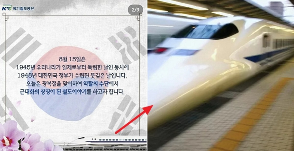 앞서 국가철도공단은 지난 15일 공식 인스타그램 계정을 통해 "광복절 77주년 특집"이라는 제목으로 광복절 기념 게시물을 올렸다.