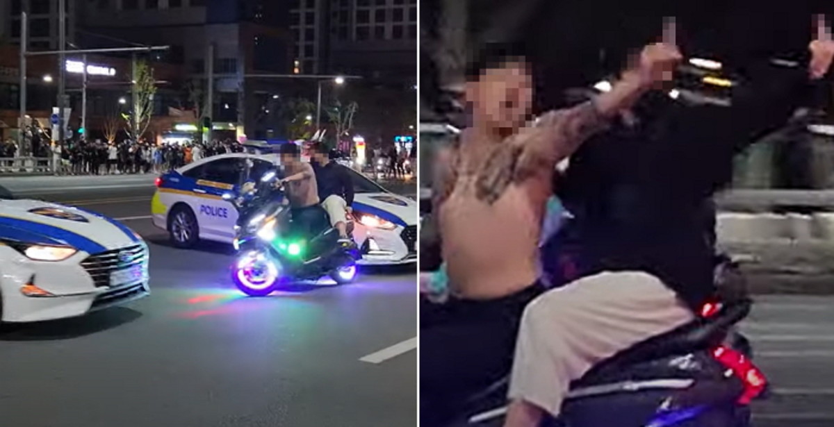 이들은 헬멧을 착용하지 않은 채 신호를 위반하며 위험천만한 오토바이 질주를 이어갔다.