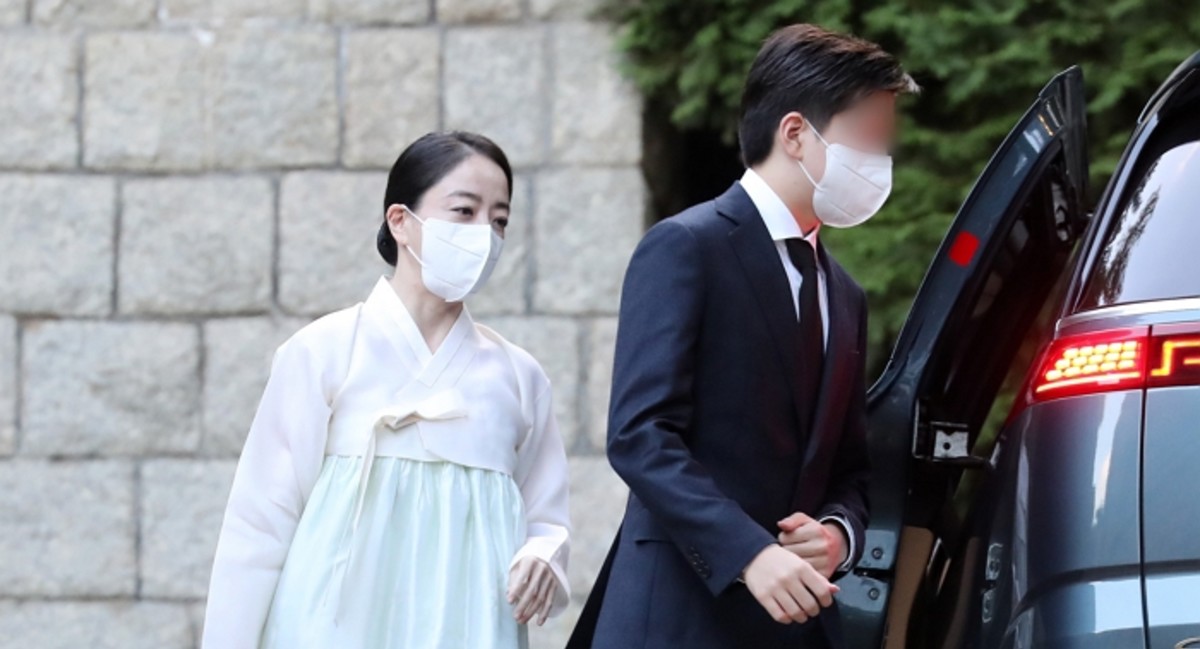 이날 노 전 아나운서는 흰색 저고리에 옥빛 치마를 입고 검은색 핸드백을 든 모습이었다.
