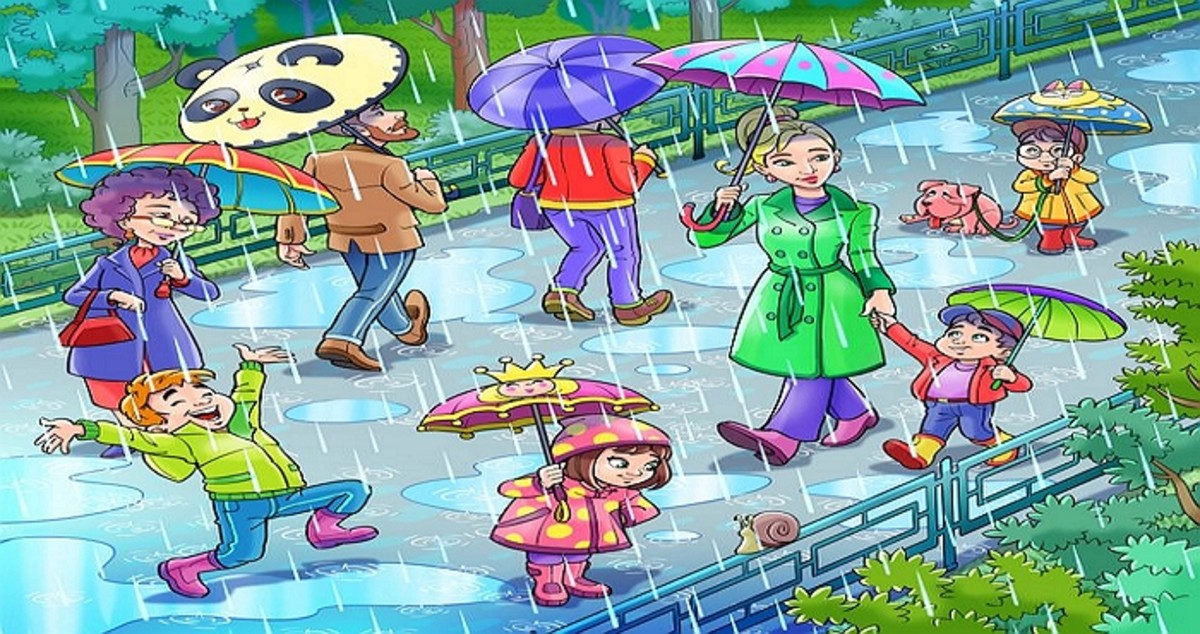 먼저 주어진 그림을 잘 보면 다양한 동물들이 곳곳에 그려져 있는데, 우산에도 동물 그림을 넣어 혼돈을 유발한다.
