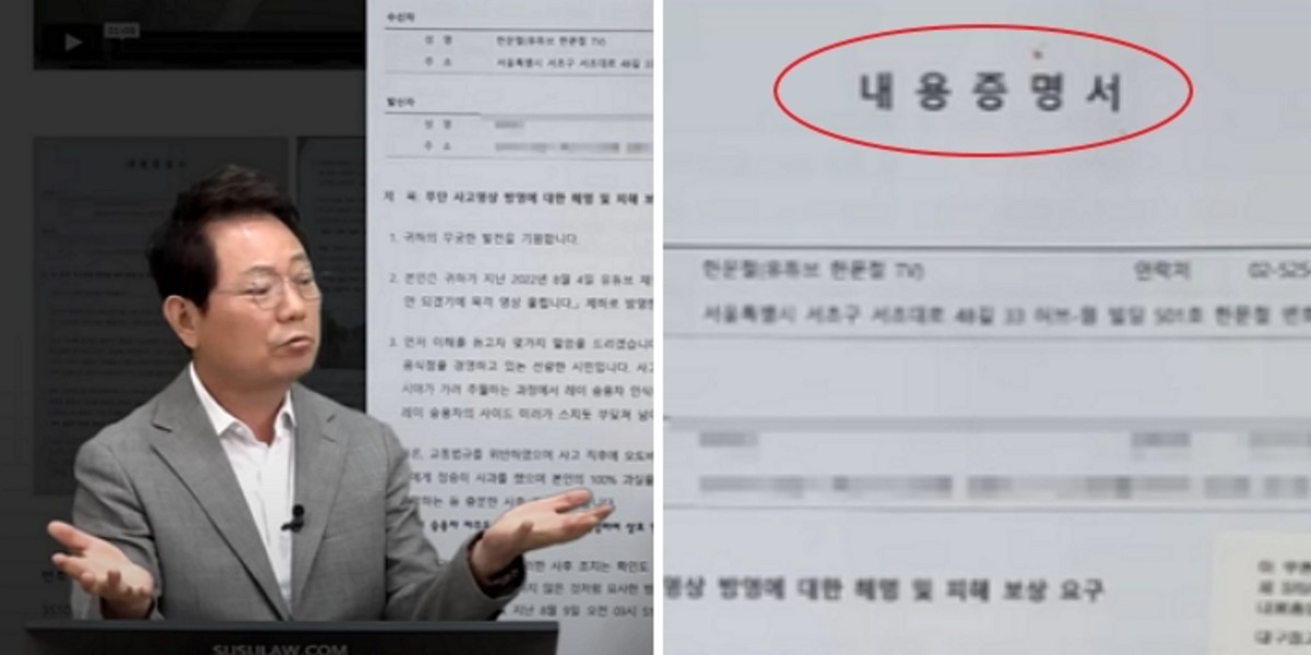 가해자가 보낸 내용증명 / Youtube '한문철 TV'