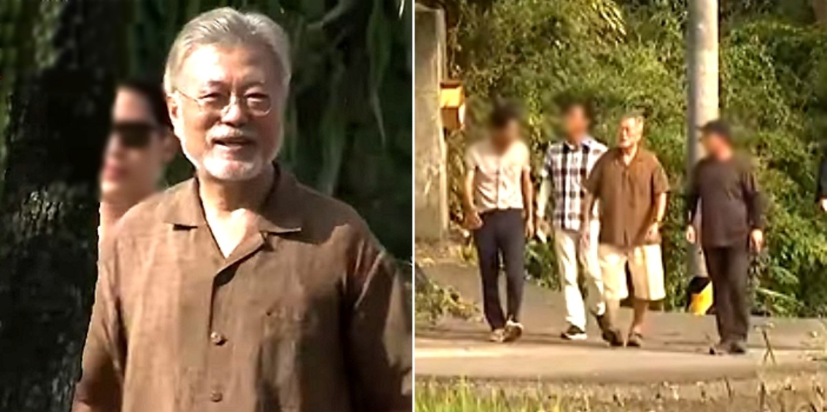 문 전 대통령은 반소매, 반바지 차림에 수염을 기른 모습이었다.