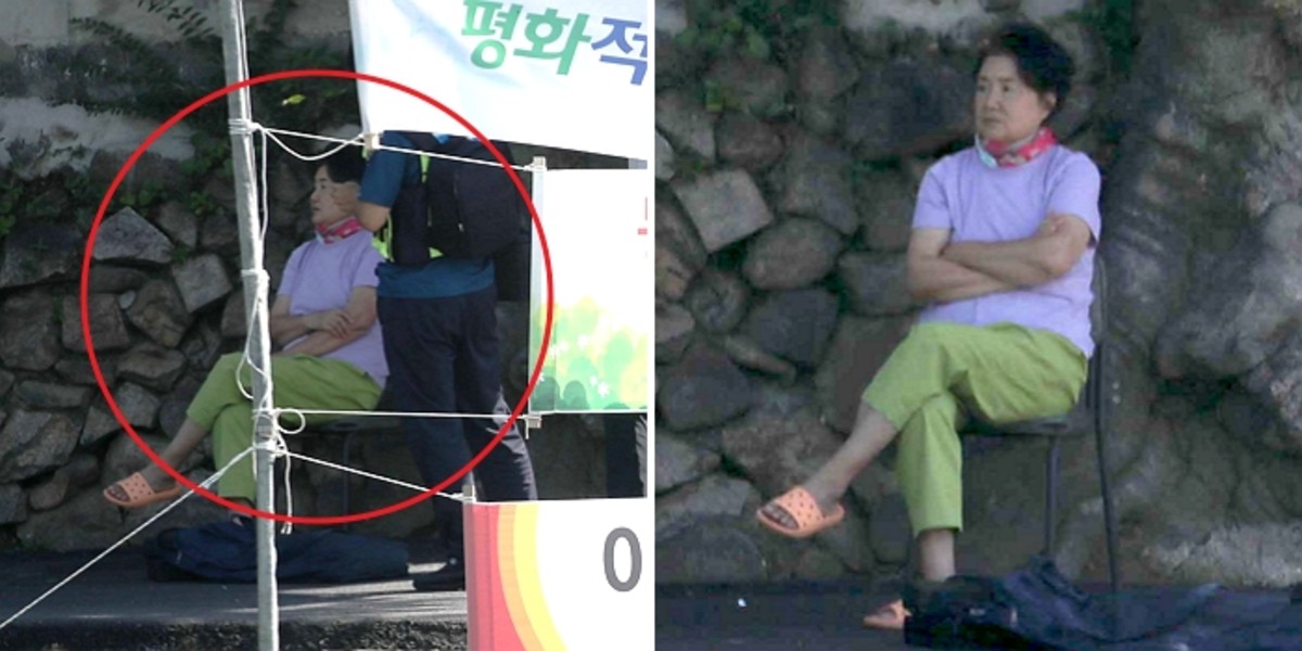 김 여사 옆에는 경호원으로 추정되는 한 남성이 서 있었다.