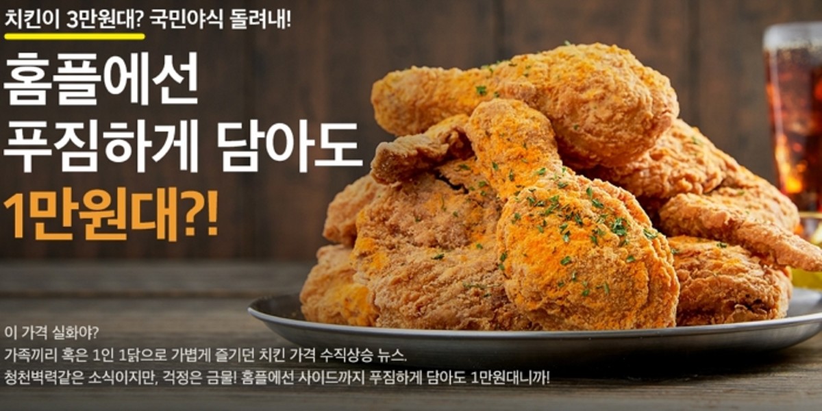 홈플러스 홈페이지에는 "치킨이 3만 원 대? 국민 야식 돌려내!"란 타이틀의 게시물이 소개됐다.