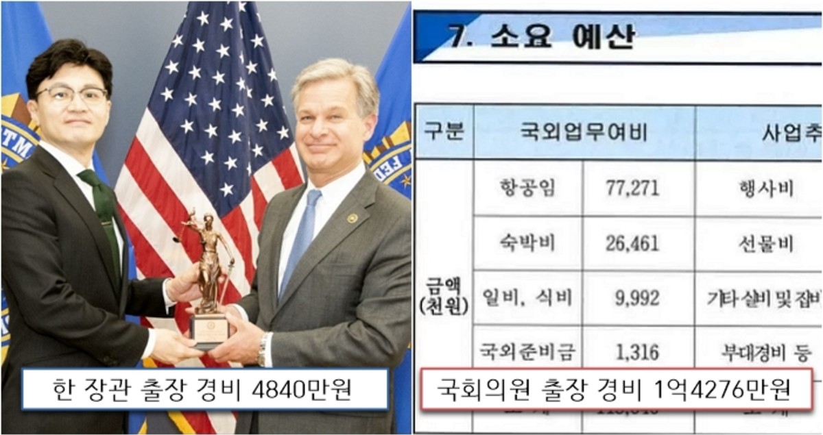 [인사이트] 함철민 기자 = 지난 6월 한동훈 법무부 장관의 미국 출장 경비보다 국회의원들의 미국 출장 비용이 더 많이 나온다는 지적이 나왔다.