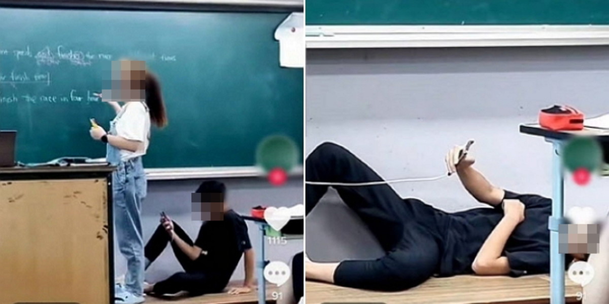 보도에 따르면 교사 뒤에 앉은 채 스마트폰을 보던 학생은 드러눕기까지 했다. 스마트폰으로 교사를 아래에서 위로 촬영했다. 교실에는 다른 학생들도 있었지만 그를 제지하는 학생은 없었다.