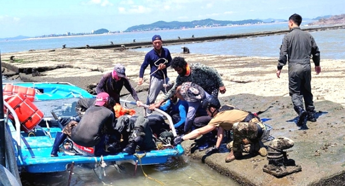 스리랑카 근로자들은 김 양식 도구로 서둘러 밧줄을 끊고 풀어서 조종사들을 구출했다.