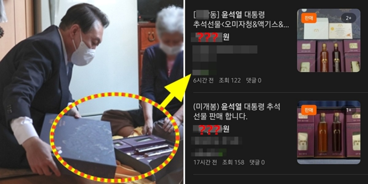 윤석열 대통령이 보낸 추석 선물세트 중고거래 매물로 등장