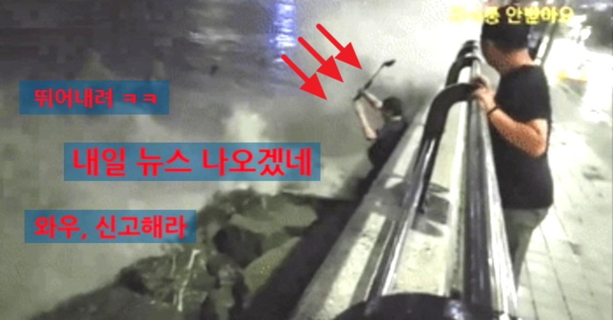 방파제 바로 앞에서 셀카봉 들고 방송, 실시간 시청자들 반응이...