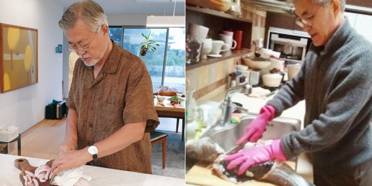 공개된 사진에는 요리를 하는 문 전 대통령의 모습이 담겼다.