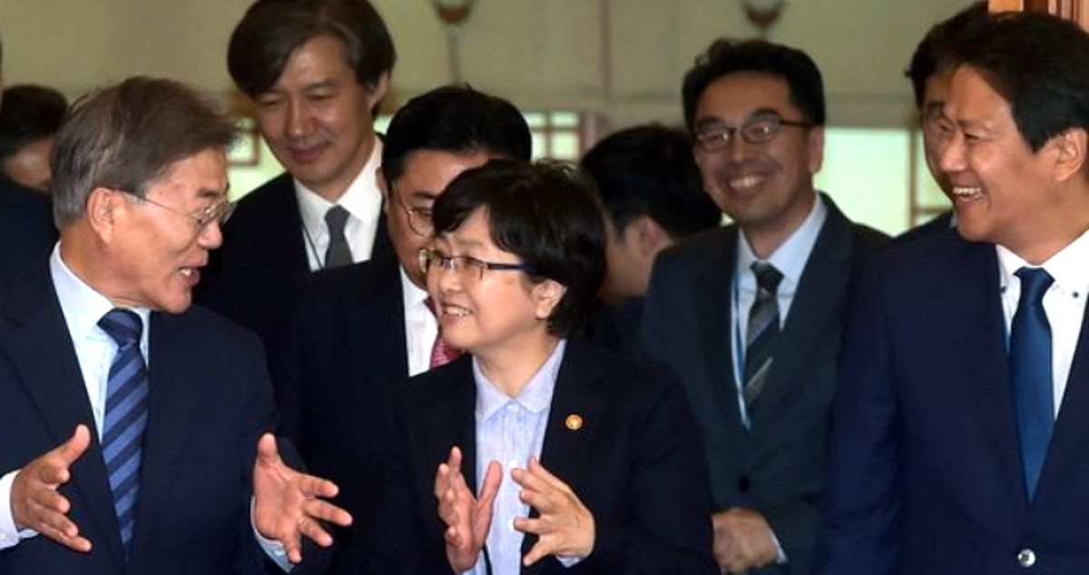 지난 2017년 7월 4일 문재인 전 대통령(왼쪽)과 김은경 환경부 장관(가운데), 임종석 비서실장(오른쪽) / 청와대사진기자단