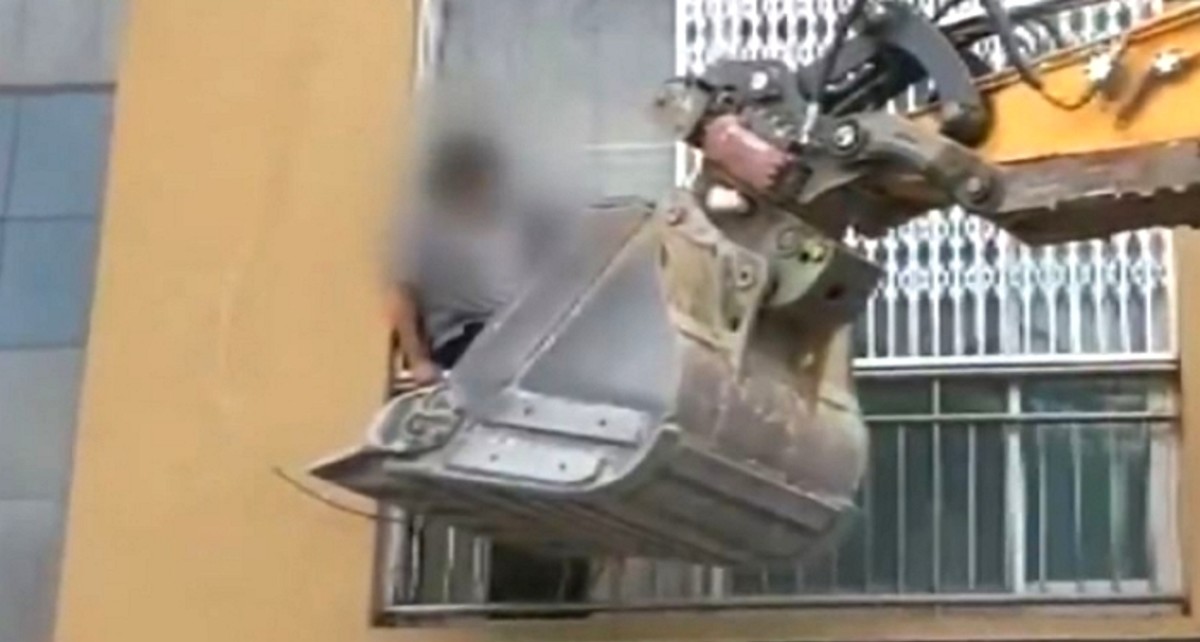 KBS 뉴스가 이날 공개한 영상에 따르면 직원들은 인근 건설 현장에서 사용하던 굴착기를 동원해 2층 창문 밑에서 모자를 안전하게 구조했다.