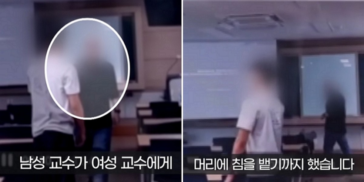 보도에 따르면 남성 교수는 여성 교수에게 다짜고짜 욕설을 퍼붓고, 여성 교수를 강제로 주저앉혔다. 심지어 머리에 침을 뱉기까지 했다.