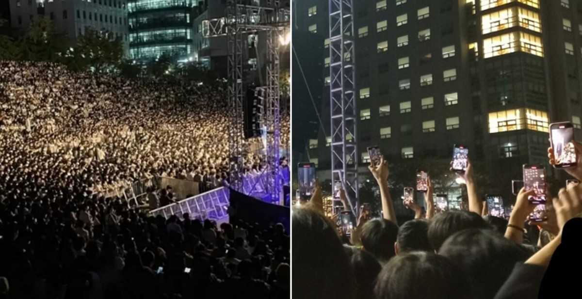 대학 축제 하이라이트 '연예인 축제 공연'...앞 학생들 스마트폰, 축제 공연 뒤덮어