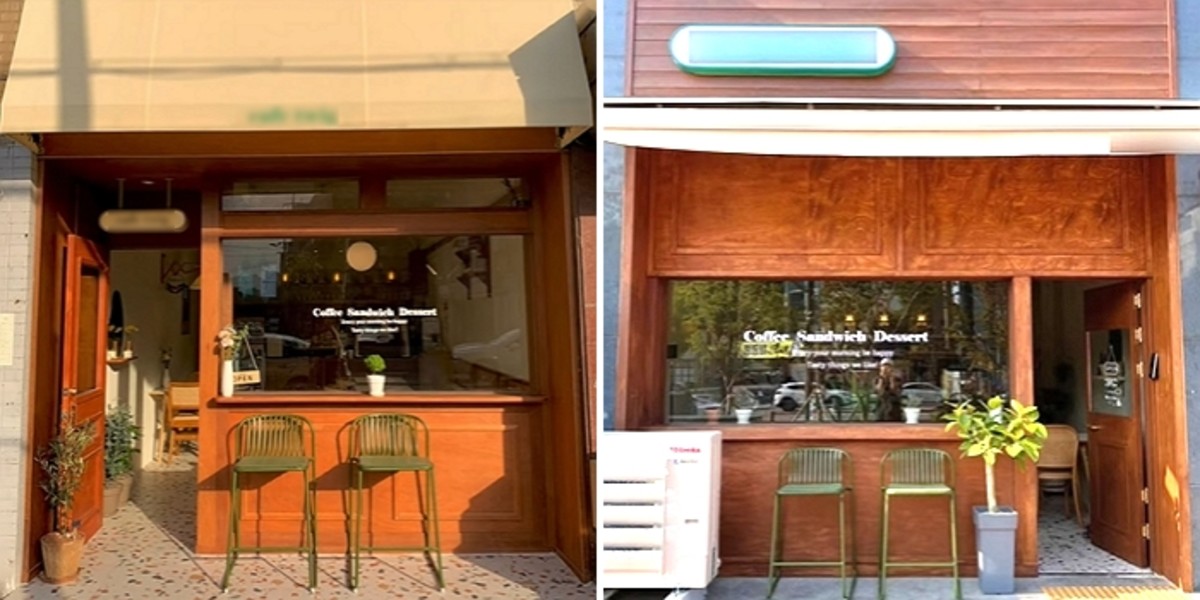 특히 매장 유리에는 'Coffee, Sandwich, Dessert'라는 문구도 동일하게 적혀있었다.