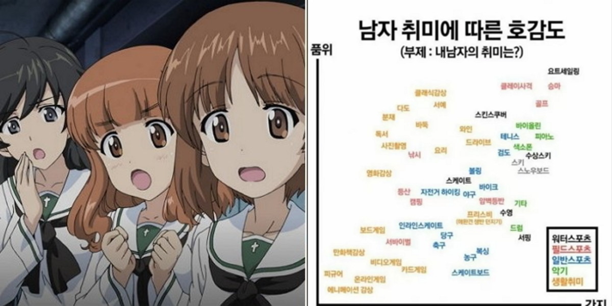 그런 가운데 여초 온라인 커뮤니티를 중심으로 '남성 취미 티어표'가 공유돼 커플들의 관심을 모았다.