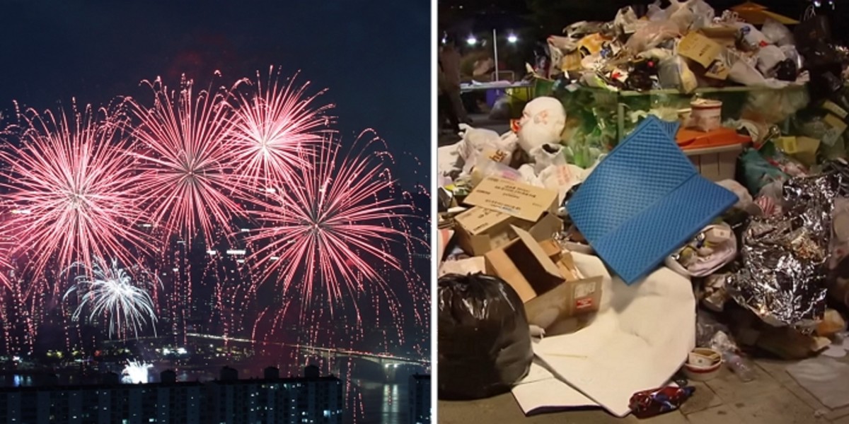화려한 불꽃축제 끝나자 '쓰레기'로 뒤덮인 한강공원