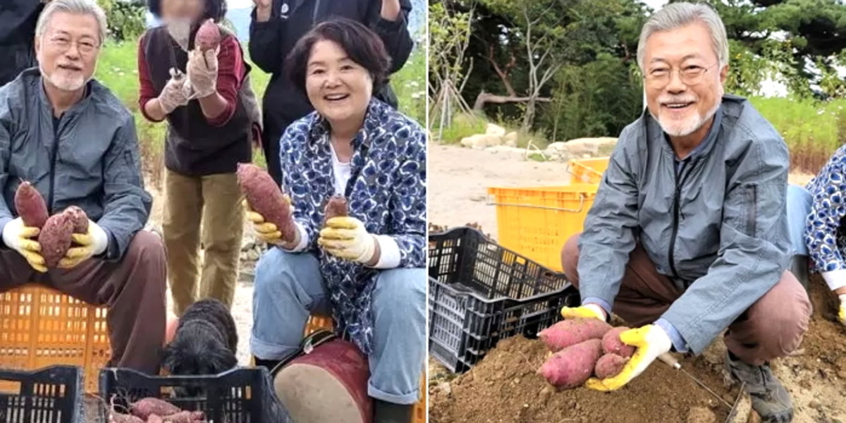 지난 12일 평산마을 비서실은 SNS를 통해 "수확의 기쁨"이라며 문 전 대통령이 사저 인근 밭에서 고구마를 캐고 있는 모습을 업로드했다.